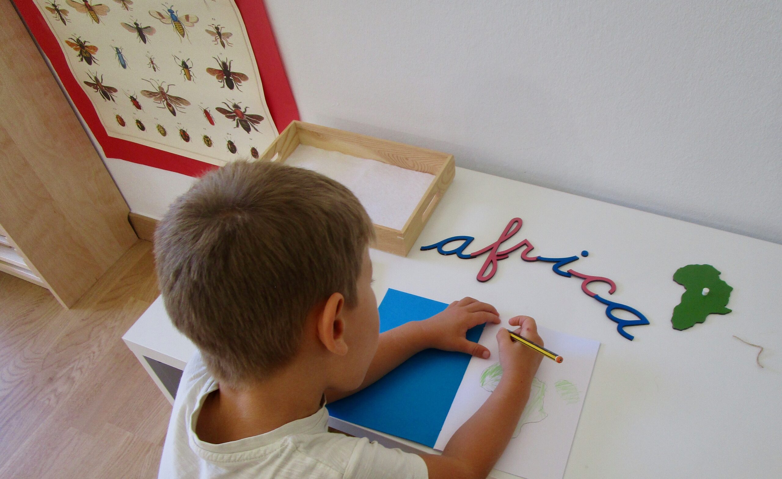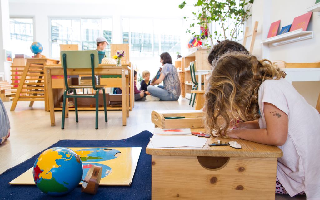 As the child continues, she is introduced to sounds and symbols which lay the groundwork for reading and writing in the future. She is introduced to numbers and the decimal system – with the most amazing concrete materials to show her the way. She learns about land and water forms, geometric figures, the political countries of the world; she learns about the parts of plants and animals and about music and art – at her own pace, in her own time.
