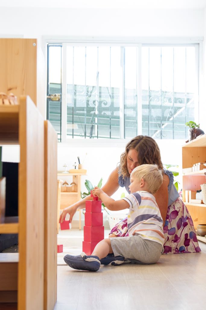 Your child will stay in the Children’s House for 3 years. Montessori is a continuum of education that allows your child to build upon his/her experiences each year. In the first year, the days will be filled with activities centred around “Practical Life”. Here, he learns to sweep the floor, bake bread, polish silver and clean the leaves of plants. He experiments with sensorial materials that educate his visual, auditory and tactile senses. He plays vocabulary sound games and sings and dances when children gather for group activities.